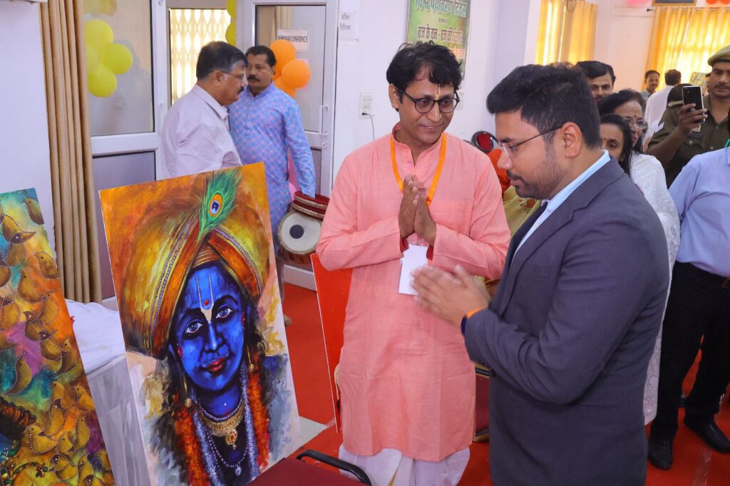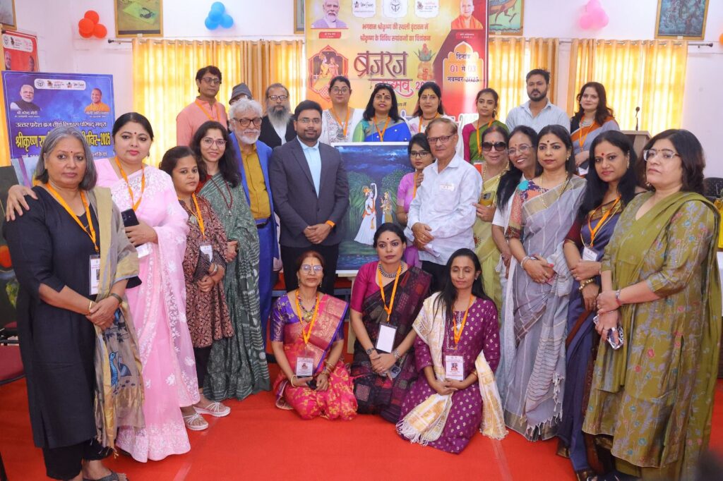 उप्र ब्रज तीर्थ विकास परिषद के श्रीकृष्ण राष्ट्रीय चित्रांकन शिविर-2025 में देश भर से आये चित्रकारों ने कैनवास पर रंगों से चित्रित कीं लीलाएं