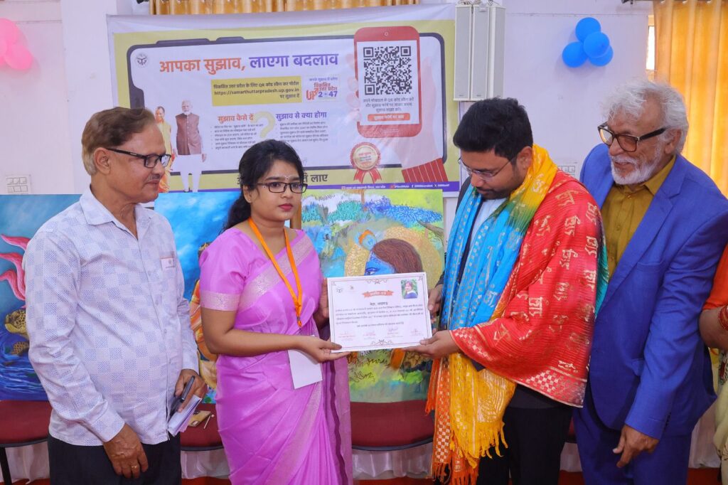 समापन समारोह में मुख्य कार्यपालक अधिकारी श्री सूरज पटेल ने कलाकारों को प्रशस्ति पत्र प्रदान कर सम्मानित किया। उन्होंने कहा कि श्रेष्ठ कृतियों को मुख्यमंत्री कार्यालय में वह भारत सरकार के डाक विभाग कार्यालय में लगाया जाएगा भविष्य में ग्लोबल चित्रांकन शिविर का आयोजन भी होगा प्रधानमंत्री और मुख्यमंत्री योगी जी कल के क्षेत्र में कल संरक्षण पर विशेष बल दे रहे हैं