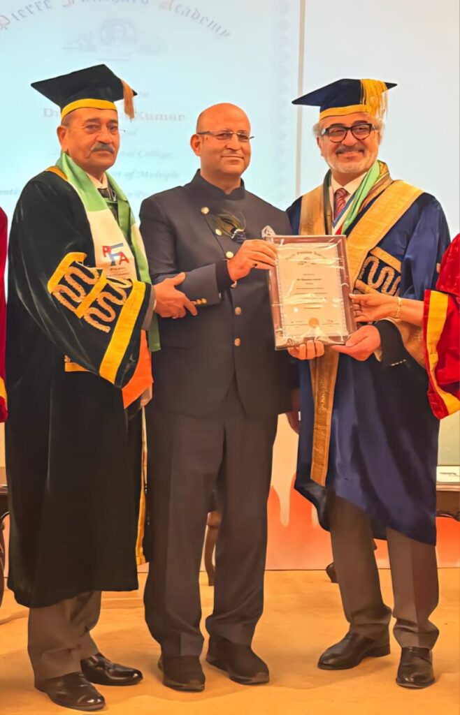मथुरा। दंत चिकित्सा के क्षेत्र में उत्कृष्टता, नेतृत्व और नवाचार को बढ़ावा देने को प्रतिबद्ध पियरे फॉचर्ड अकादमी (इंडिया सेक्शन) के 39वें वार्षिक दीक्षांत समारोह में मुख्य अतिथि पियरे फॉचर्ड अकादमी के अंतरराष्ट्रीय अध्यक्ष डॉ. ग़ाबी कास्पो ने अपने सम्बोधन में दंत चिकित्सा शिक्षा और विश्व स्तर पर रोगी देखभाल को आगे बढ़ाने के लिए नैतिक नेतृत्व, अकादमिक उत्कृष्टता और वैश्विक सहयोग को आधारशिला बताया। इस अवसर पर उनके करकमलों से के.डी. डेंटल कॉलेज को अकादमिक उत्कृष्टता पुरस्कार के साथ संस्थान के सात प्रतिनिधियों को फैलोशिप प्रदान की गई।