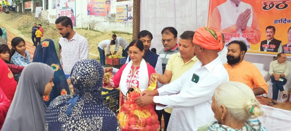 { कमला फाउंडेशन की अध्यक्ष पूनम सिंह ने तीसरे और चौथे दिन राजघाट पर व्रती महिलाओं संग की सूर्योपासना}