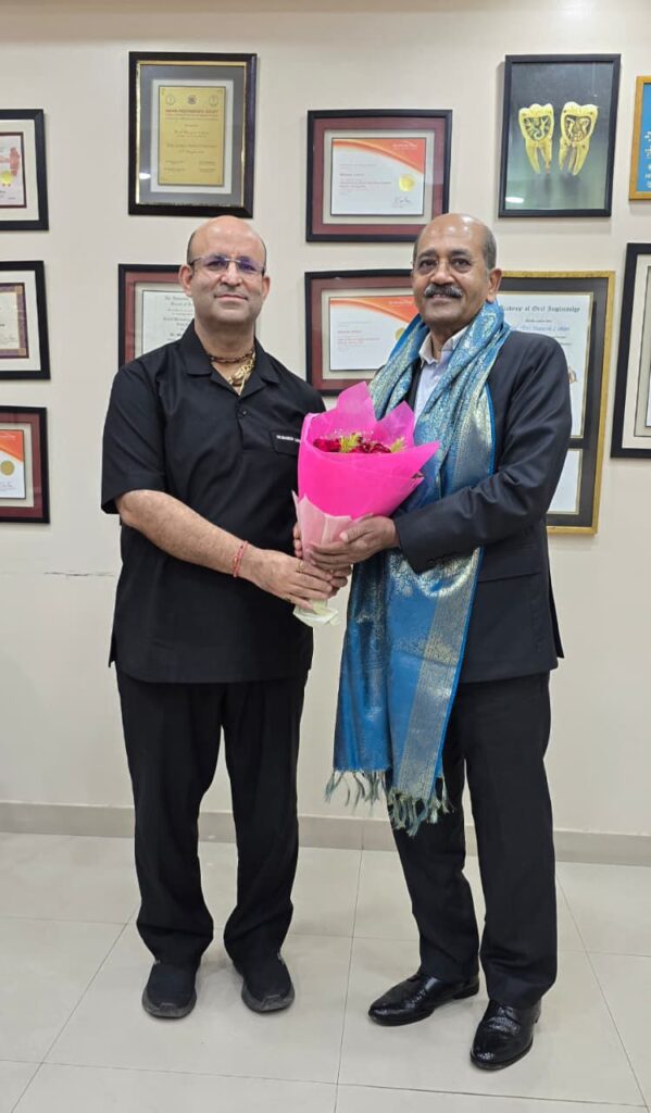 मुख्य अतिथि आईडीए के राष्ट्रीय अध्यक्ष डॉ. राजीव कुमार चुघ को पुष्प गुच्छ भेंट करते हुए प्राचार्य डॉ. मनेष लाहौरी।