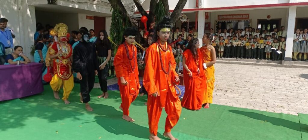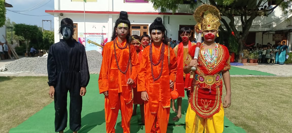 महाराजगंज -रायबरेली। न्यू स्टैंडर्ड पब्लिक स्कूल सलेथू ,महराजगंज में दशहरे व नवरात्रि के अवकाश आरंभ से पूर्व कन्या- भोज तथा बुराई पर अच्छाई की विजय स्वरूप ‘दशहरा’ पर्व बहुत हर्षोल्लास के साथ मनाया गया|कार्यक्रम का शुभारंभ प्रधानाचार्य राजीव सिंह तथा उप- प्रधानाचार्या रजनी श्रीवास्तव के द्वारा देवी मां दुर्गा जी व उनके नौ स्वरूपों की पूजा अर्चना के साथ किया गया तत्पश्चात कन्या भोज का आयोजन किया गया साथ ही कन्याओं को उपहार भी दिया गया| बच्चों के द्वारा मां दुर्गा के नौ रूपों को विभिन्न झांकियों के माध्यम से दर्शाया गया। तत्पश्चात रावण दहन मर्यादा पुरुषोत्तम श्रीराम के द्वारा किया गया | राम,लक्ष्मण,सीता तथा हनुमान के वनवासी वेश में बच्चे बहुत ही मनमोहक लग रहे थे | बच्चों के द्वारा विभिन्न नाट्य कार्यक्रम भी प्रस्तुत किए गए| कार्यक्रम का समापन रावण दहन से हुआ| उपरोक्त समस्त कार्यक्रम में ख्याति,अवनी,नित्या,सामर्श , सक्षम, मार्कण्डेय,शिवम,अमित,प्रिंस, रिद्धिमा, आर्या,एंजिल,सोनाक्षी,रोहिणी, प्राख्या,आकृति,हार्दिक,नैतिक, शाश्वत, कृष्णा आदि प्रमुख छात्र- छात्राएं थे। प्रधानाचार्य ने अपने उद्बोधन में बच्चों को विजयदशमी की जानकारी देते हुए कहा कि इसी दिन अन्याय पर न्याय की जीत, असत्य पर सत्य की विजय,और अनाचार पर सदाचार की जीत हुई थी अतः बुराई कितनी भी प्रबल क्यों न हो जीत हमेशा सच्चाई की ही होती है इसीलिए हमेशा हमें सत्य का मार्ग ही चुनना चाहिए साथ ही उन्होंने दशहरे पर्व की सभी को बधाई व शुभकामनाएं दी|इस अवसर पर विद्यालय के शिक्षक – शिक्षिकाएं व सभी छात्र -छात्राएं उपस्थित रहे|