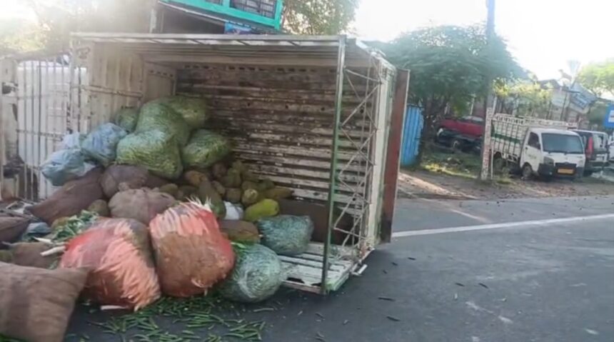 सब्जी लदी डीसीएम गाड़ी पलटी हादसे में दो घायल